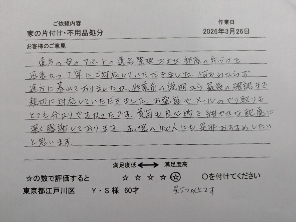 各種お片付けから、神棚仏壇仏具のお焚き上げまでご要望に合わせて片づけいたします。