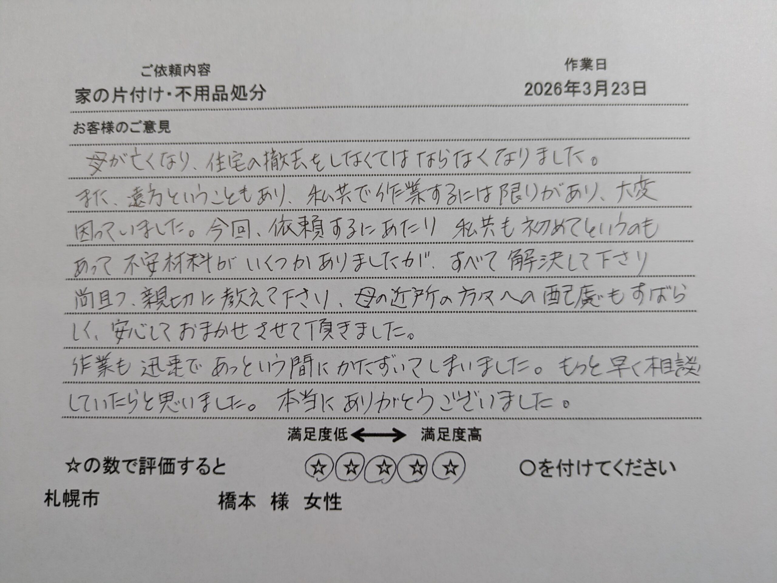 お母様が他界され気持ちの整理もつかぬうちにあれもこれもと本当に大変でしたね 我々の仕事が皆様の心の整理のひとつになればと思います。